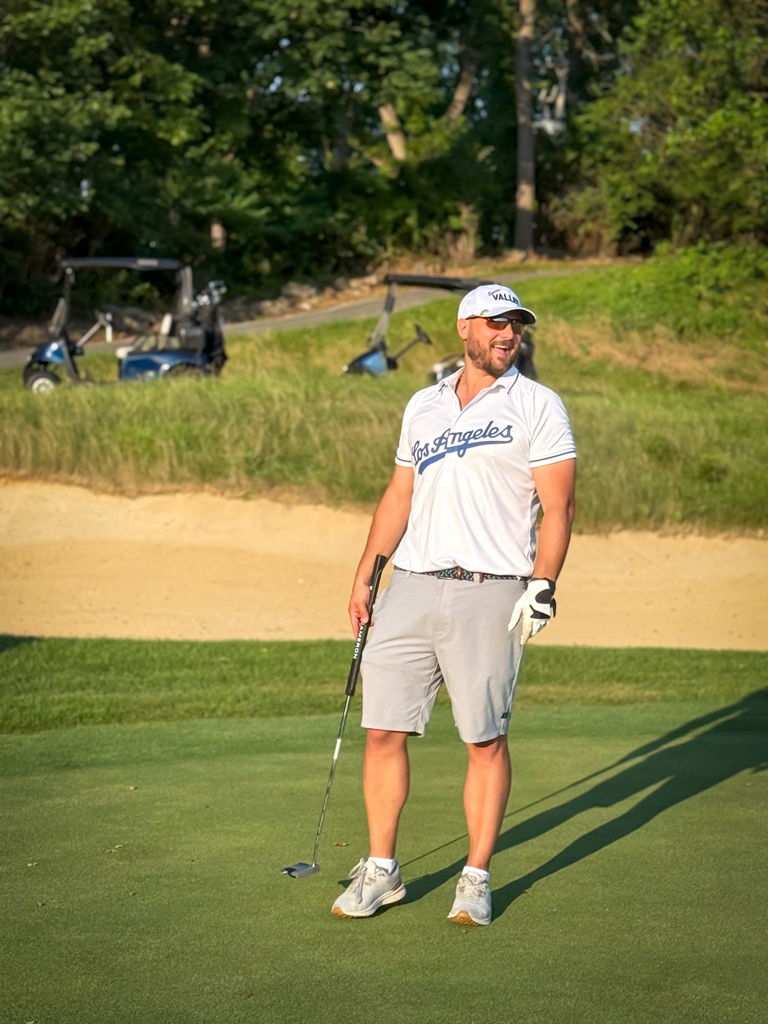 West Coast energy...Made with breezy, sweat-wicking polyester/spandex blend, it keeps you cool whether you’re bombing drives or heckling your buddy’s swing. With gameday graphics and a fit made for the fairway, this is your new go-to for looking sharp and swinging loose.